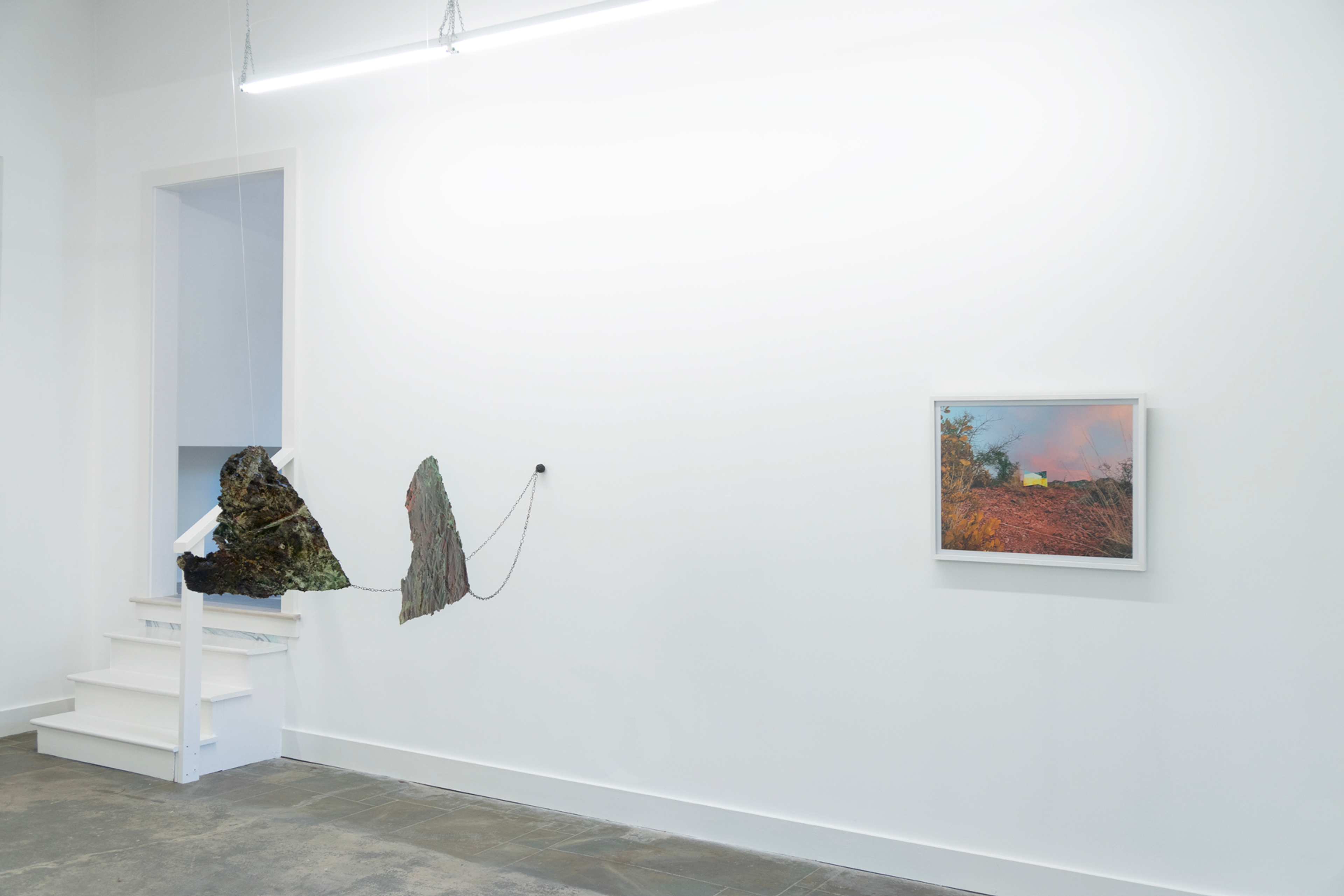 Via photo, video, and sculpture, MaDora Frey and Vanessa Thill explore themes of confinement of the body in quarantine and expose the layers of emotional and aesthetic resonance in our relationships to place. Frey and Thill were both influenced by Lucy Lippard’s book Undermining: A Wild Ride Through Land Use, Politics, and Art in the Changing West, which presents a collage of concerns about the ways humans intersect with nature. The artists were compelled by Lippard’s analysis of social systems through the lens of gravel, pits, and rock materials. She writes, “A gravel pit offers an entrance to the strata of place, suggesting some fissures in the capitalist narrative into which art can flow.”