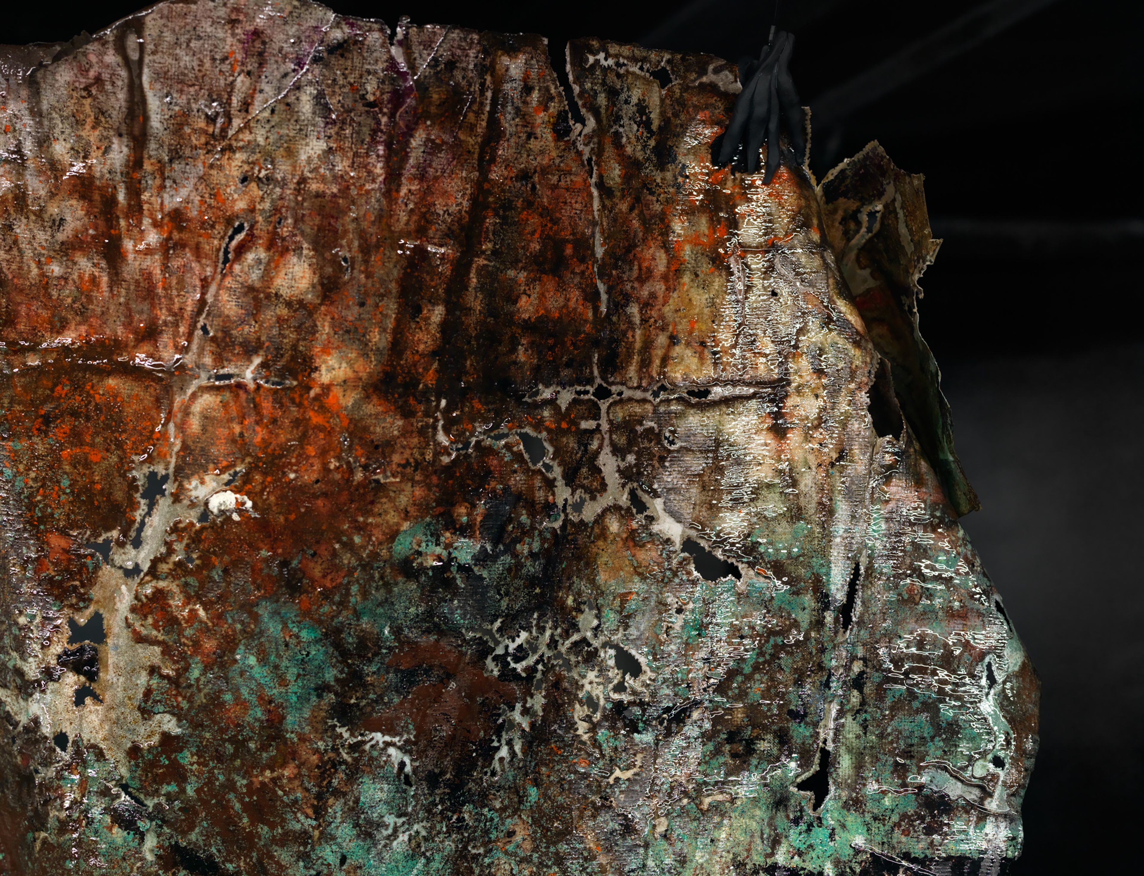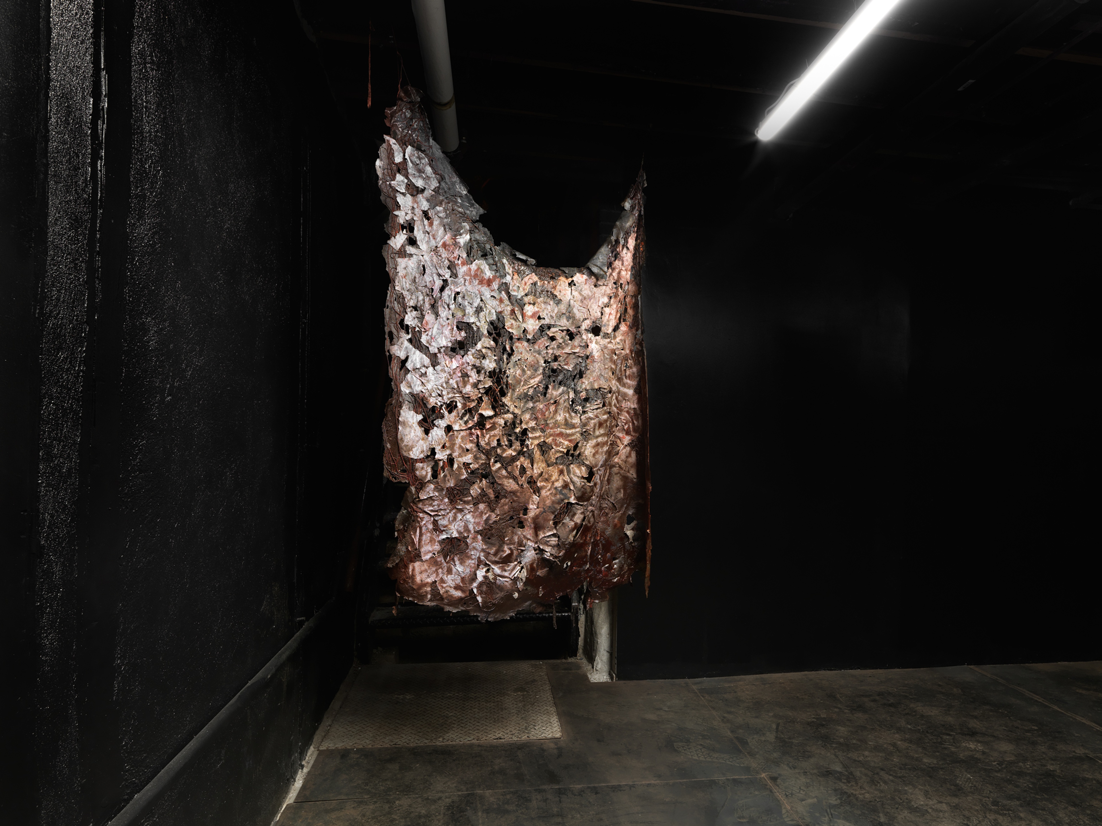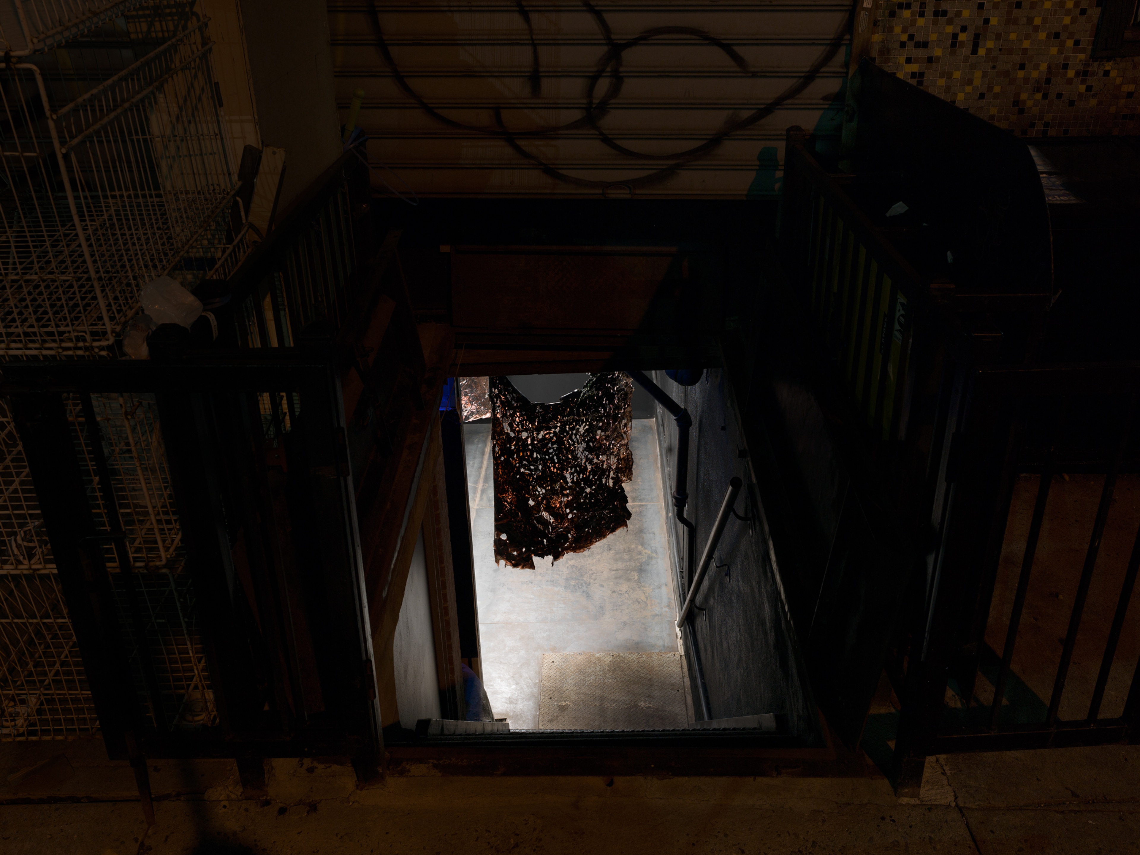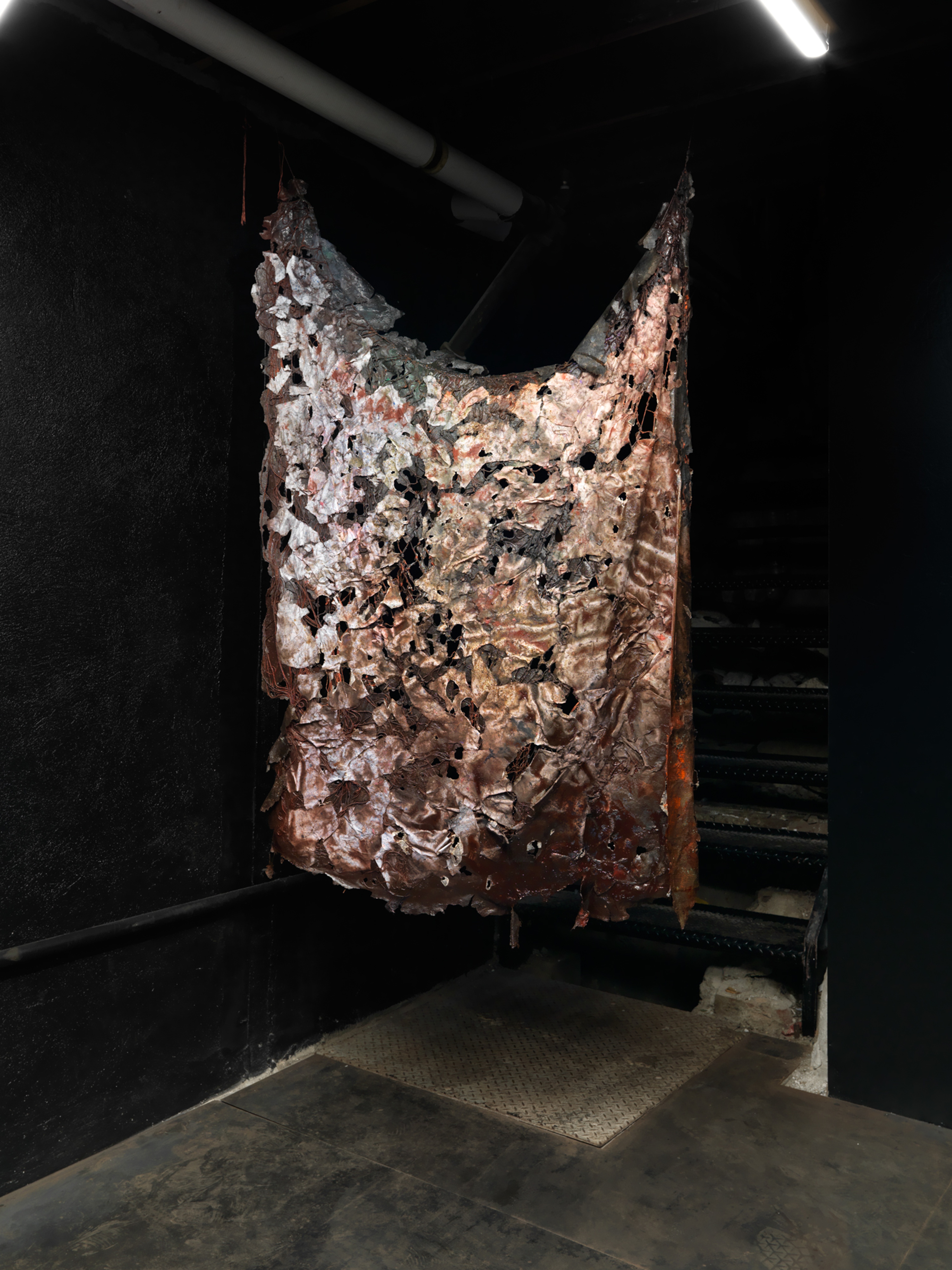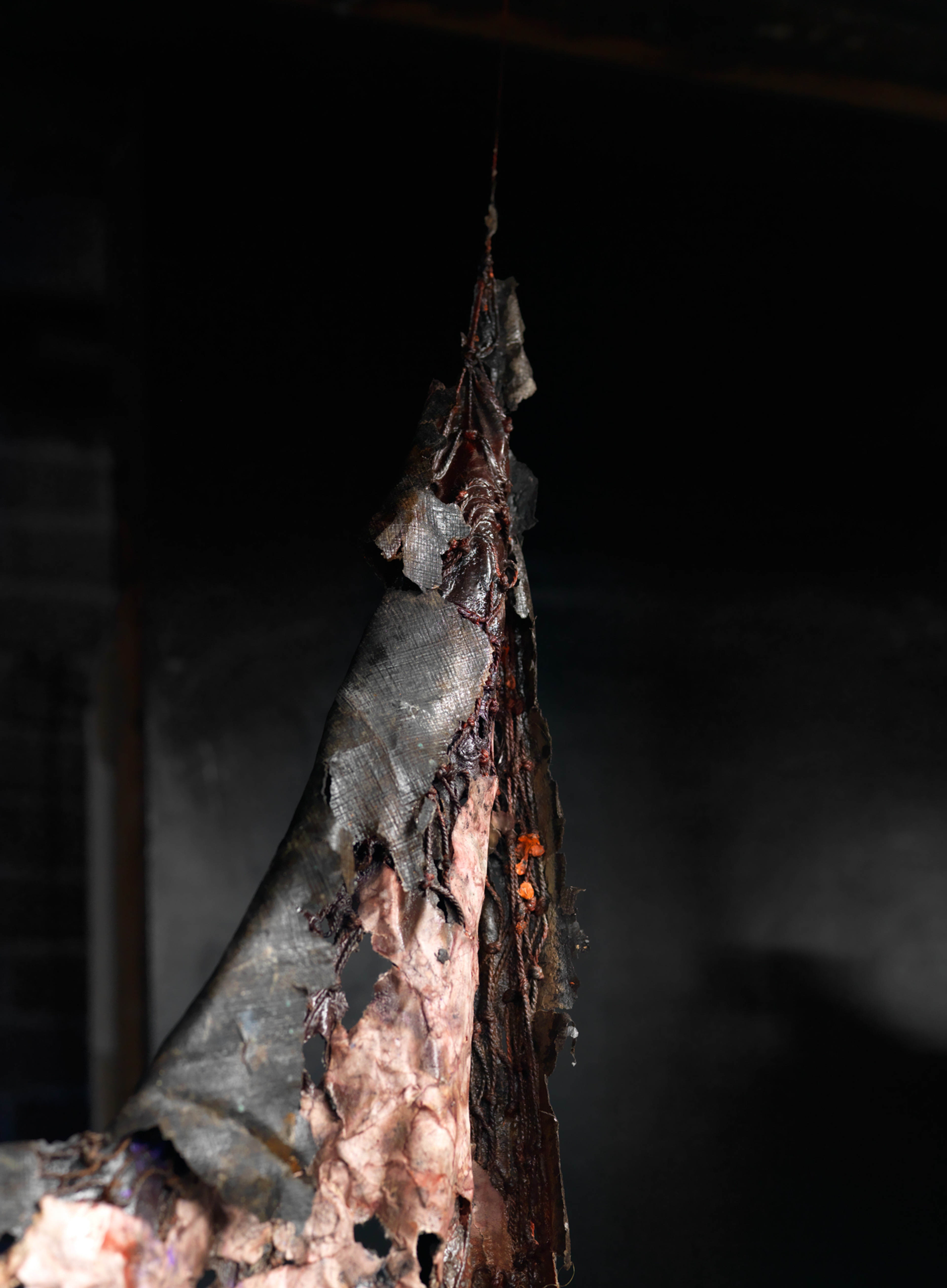 The pelted-up wreckage of a bear tarp